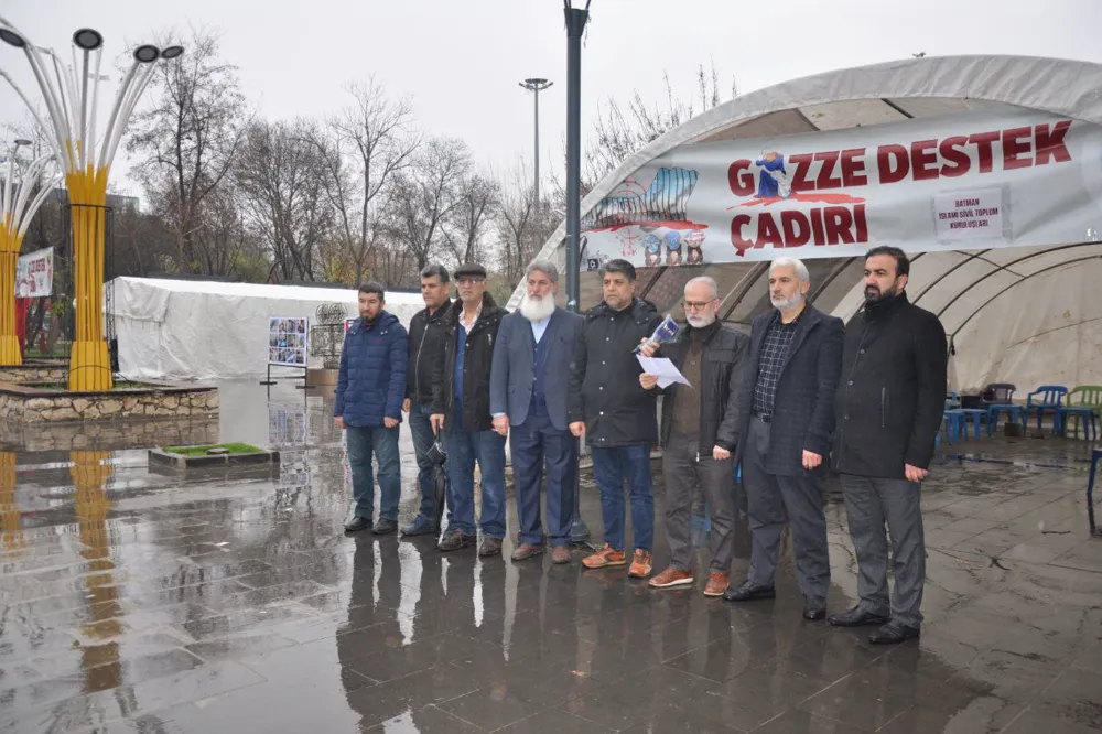 Batman İslami Sivil Toplum Kuruluşları, üç aydır siyonist işgal rejiminin yoğun saldırıları altında olan Filistinli Müslümanlara destek amacıyla "Gazze Çadırı" kurdu.