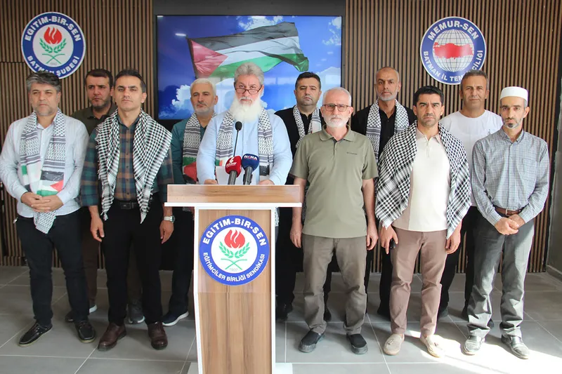 Batman'daki sivil toplum kuruluşları, Memur-Sen Batman İl Başkanlığı binasında bir araya gelerek Gazze'de yaşanan gelişmeler ve HAMAS ile işgal rejimi arasında imzalanan anlaşma hakkında ortak bir basın açıklaması yaptı.