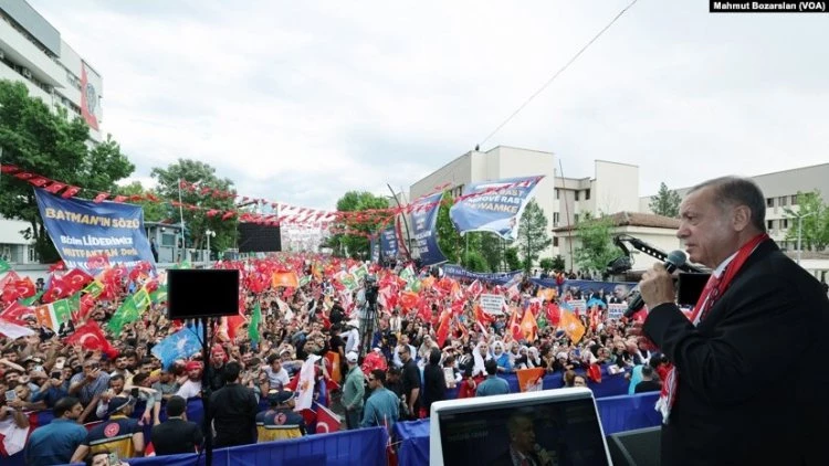 Seçimlere 3 gün kala Batman ve Mardin’de seçmenlerin karşısına çıkan Cumhurbaşkanı Recep Tayyip Erdoğan, en yakın rakibi Millet İttifakı’nın adayı Kemal Kılıçdaroğlu’na Kürt sorunu üzerinden yüklendi. Kılıçdaroğlu’nun seçim şarkısı olan “Sana söz baharlar gelecek’ şarkısına gönderme yapan Erdoğan, “Bay bay Kemal getirse getirse sadece Kandil'e ve Pennsylvania'ya bahar getirir” dedi. Erdoğan AKP tarafından düzenlenen seçim mitingine, HÜDA PAR Genel Başkanı Zekeriya Yapıcıoğlu ile katıldı.