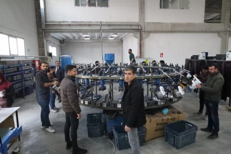 ŞANLIURFA (İGFA) - Şanlıurfa Büyükşehir Belediye Başkanı Zeynel Abidin Beyazgül, Şanlıurfa Valisi Salih Ayhan, Haliliye Belediye Başkanı Mehmet Canpolat, iş başı yapılan ayakkabı fabrikasında incelemelerde bulundu.