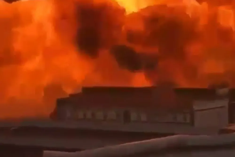 Yaşanan patla ile alevler gökyüzüne yükselirken patlamanın şiddetiyle büyük cisimlerin onlarca metre uzağa fırladığı görüldü.