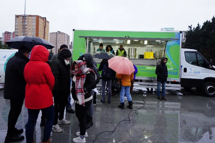 Beylikdüzü Belediyesi, soğuk kış günlerinde vatandaşlara sıcak çorba ikramında bulunuyor.