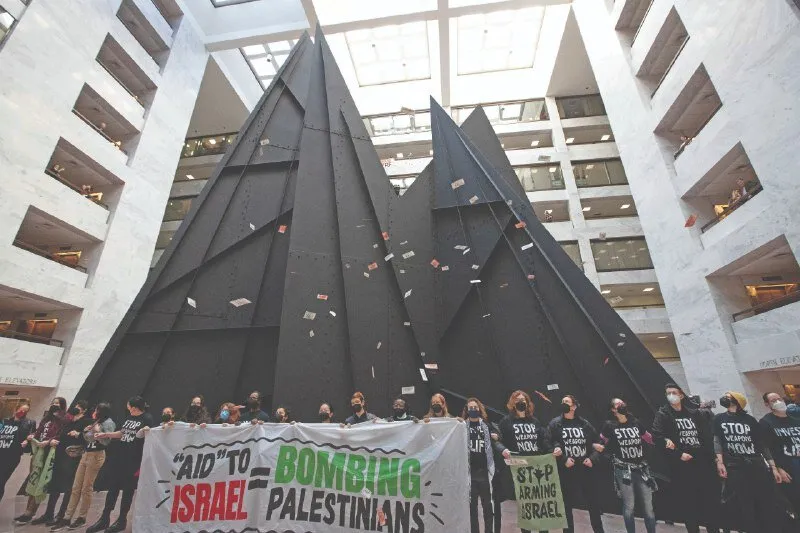 Gazze'de sivil kayıpları ve evlerin ve altyapının yıkıcı bir şekilde yıkılmasına ilişkin görüntüler medyaya akın ederken, kamuoyunun duyarlılığı salt onaylamamaktan aktif protestoya doğru evrildi. Bu haftanın başlarında düzinelerce eylemci ABD Senatosu ofis binası önünde protesto gösterisi düzenleyerek ABD'nin İsrail ile Hamas arasında kalıcı bir ateşkes için baskı yapmasını talep etti. Üzerinde "Bizim Adımıza Değil" yazan siyah tişörtler giyen göstericiler, kendilerini Beyaz Saray'ın çitlerine zincirlediler, ABD'nin İsrail'e verdiği kanlı parayı simgeleyen sahte paraları yere saçtılar ve "Yardım" yazılı bir pankart taşıdılar. İsrail'e = Filistinlileri bombalamak."