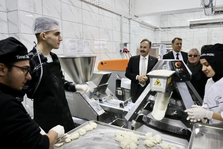 Bilecik’te 390 öğrencinin eğitim aldığı okulda Yiyecek ve İçecek Hizmetleri Bölümü öğrencileri hem öğreniyor, hem de ekmek üretiyor. Sedat CEYLAN / BİLECİK (İGFA) - Bilecik'te günlük 10 bin ekmek üretim kapasitesine sahip ekmek fırınında öğrenciler, öğretmenlerinin kontrolünde ekmek üretim sürecini başından sonuna kadar uygulamalı olarak öğreniyor. Bilecik Valisi Dr. Kemal Kızılkaya, Yavuz Selim Mesleki ve Teknik Anadolu Lisesini ziyaret ederek okuldaki ekmek fırınında incelemede bulundu. Asıl amaçlarının ülkemizin ihtiyacı olan kalifiye iş gücünü en iyi şekilde yetiştirmek olduğunu vurgulayan Vali Kızılkaya, bu ihtiyacın meslek liselerindeki uygulamalı ve yerinde eğitimle büyük ölçüde karşılandığının altını çizdi. Üretilen ekmeklerin ticari bir amaçla kullanılmadığını belirten Vali Kızılkaya, ilerleyen süreçte ihtiyaç duyulması halinde Sosyal Yardımlaşma ve Dayanışma Vakfı üzerinden gereksinim duyan vatandaşlara ve yurtlarda kalan öğrencilere ürettikleri ekmekleri göndereceklerini söyledi. Vali Kızılkaya, olası afet anında da ihtiyaçları olan ekmeği okulda üretebileceklerini de kaydetti. Daha sonra fırından yeni çıkan ekmeğin tadına bakan Vali Kızılkaya, basın mensuplarına da ikramda bulundu.