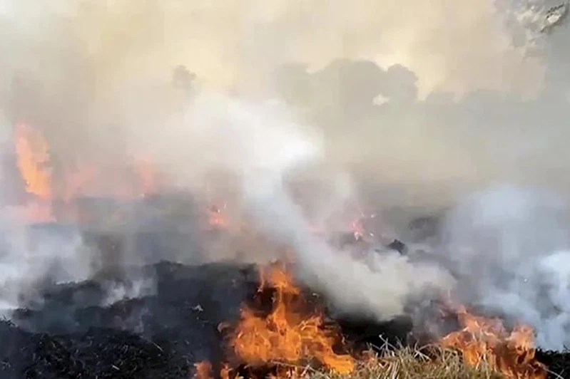 Pazaryeri ilçesine bağlı Karaköy ile Bilecik merkeze bağlı Kurtköy arasındaki tarım arazisinde anız nedeniyle yangın çıktı.