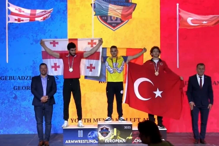 Moldova’nın Kişinev şehrinde düzenlenen Avrupa Bilek Güreşi Şampiyonasında ülkemizi ve şehrimizi temsil eden başarılı sporcu, U23 kategorisi 80 kilogramda Avrupa üçüncüsü olarak kürsüde bayrağımızı dalgalandırdı.