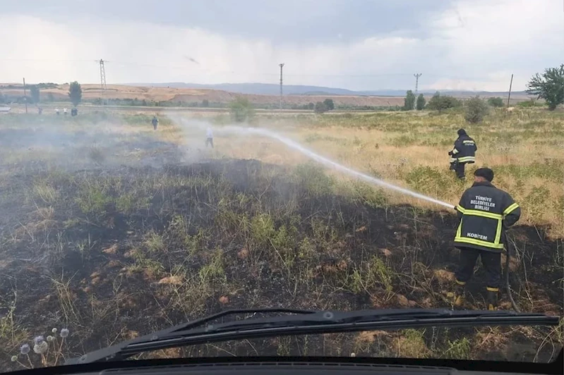 Anız yangını olarak başlayan alevler, rüzgârın da etkisiyle kısa sürede geniş bir alana yayılarak bir evin bahçesine kadar ulaştı.