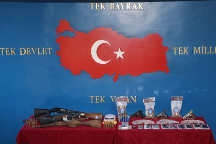 Operasyonda 21 şüpheli gözaltına alınırken, adreslerinde yapılan aramalarda 74 kilo 25 gram esrar, 6 bin 182 kök Hint keneviri, 5 kilo 8 gram kenevir tohumu, suçtan elde edildiği değerlendirilen 269 bin TL, 6 ruhsatsız av tüfeği, 4 ruhsatsız tabanca, 3 hassas terazi, 1 menşeyi tespit edilemeyen piyade tüfeği, çeşitli çaplarda 111 fişek, 14 cep telefonu, 17 sim kart, 6 hafıza kartı ele geçirildi.