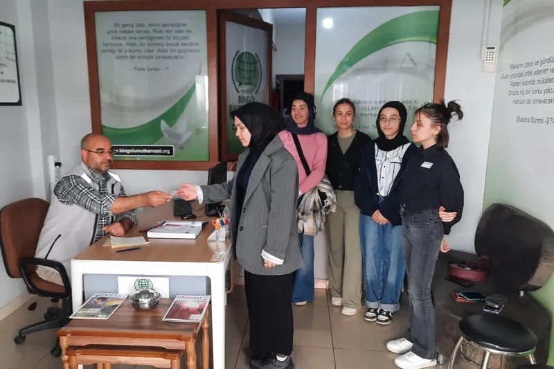 Borsa İstanbul Bingöl Anadolu Lisesi 10-D sınıfı öğrencileri Gül Rana Yıldırım, Esma Karakoç, Kübra Çetiner, Eylül Katkay ve Yaren Kalçık biriktirdikleri harçlıklarını Bingöl Umut Kervanı Derneği yetkililerine teslim etti.