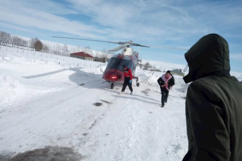 Erzurum'dan havalanan ambulans helikopter, Taşlıçay köyüne inerek sağlık ekipleri, hastayı aldı.