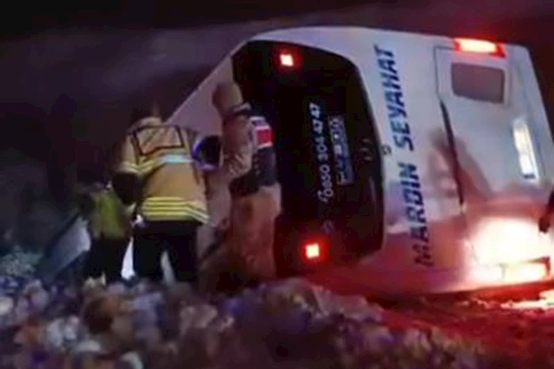 Mardin Seyahat firmasına ait 33 CFU 60 plakalı yolcu otobüsü, sürücüsünün direksiyon hâkimiyetini kaybetmesi sonucu yoldan çıkıp takla atarak devrildi.