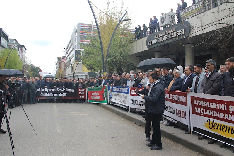Açıklamayı okuyan Boğatekin, “Gazze’de 18 aydır süren, son günlerde artarak devam eden insanlık dışı saldırılar, sivil yerleşim yerlerinin, hastanelerin, ibadethanelerin ve çadırların bombalanması siyonist rejimin vahşetini bir kez daha gözler önüne sermiştir. Gazze'de, işgalci israil tarafından 7 Ekim'den bu yana Gazze'ye, Hiroşima saldırılarında atılan bombaların 3 katından fazla bomba atıldı. İşgalci siyonistler, insani yardımların girişini de engelleyerek Gazze'nin topyekûn bir zorluğu yaşamasını istiyor. Günlerdir Gazze’ye bir kuru ekmek girmiyor. Un stokları tükendi. Fırınlar kapandı. Yakında açlıktan toplu ölüm haberlerini duyabiliriz.” dedi.