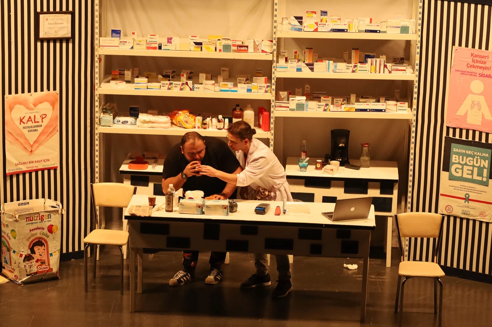 Mizahi anlatımı ve başarılı oyunculukla şölene dönüşen gösteri, iş bulamayan bir adam ile eczacı kalfasının trajikomik hikayesini konu aldı.
