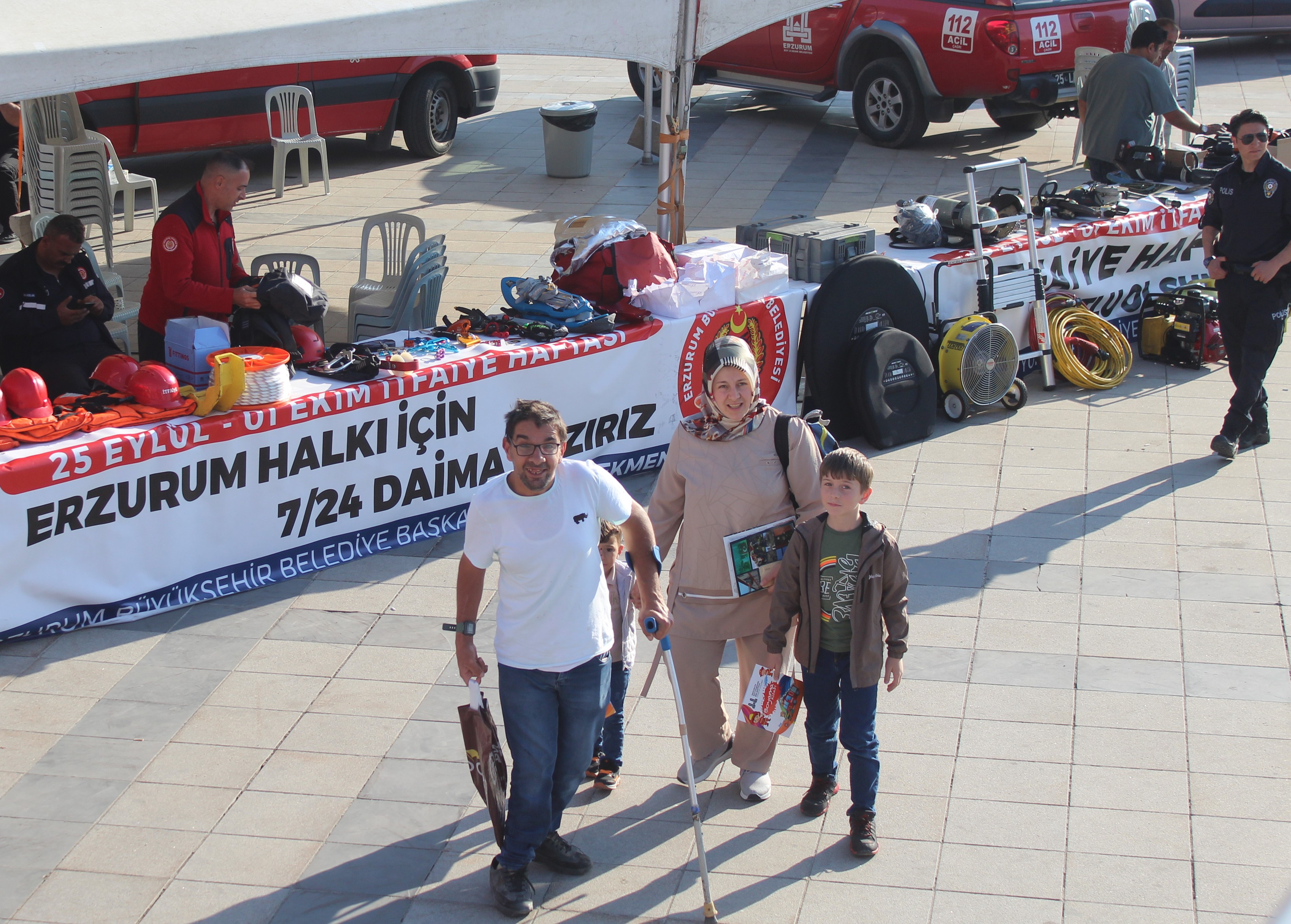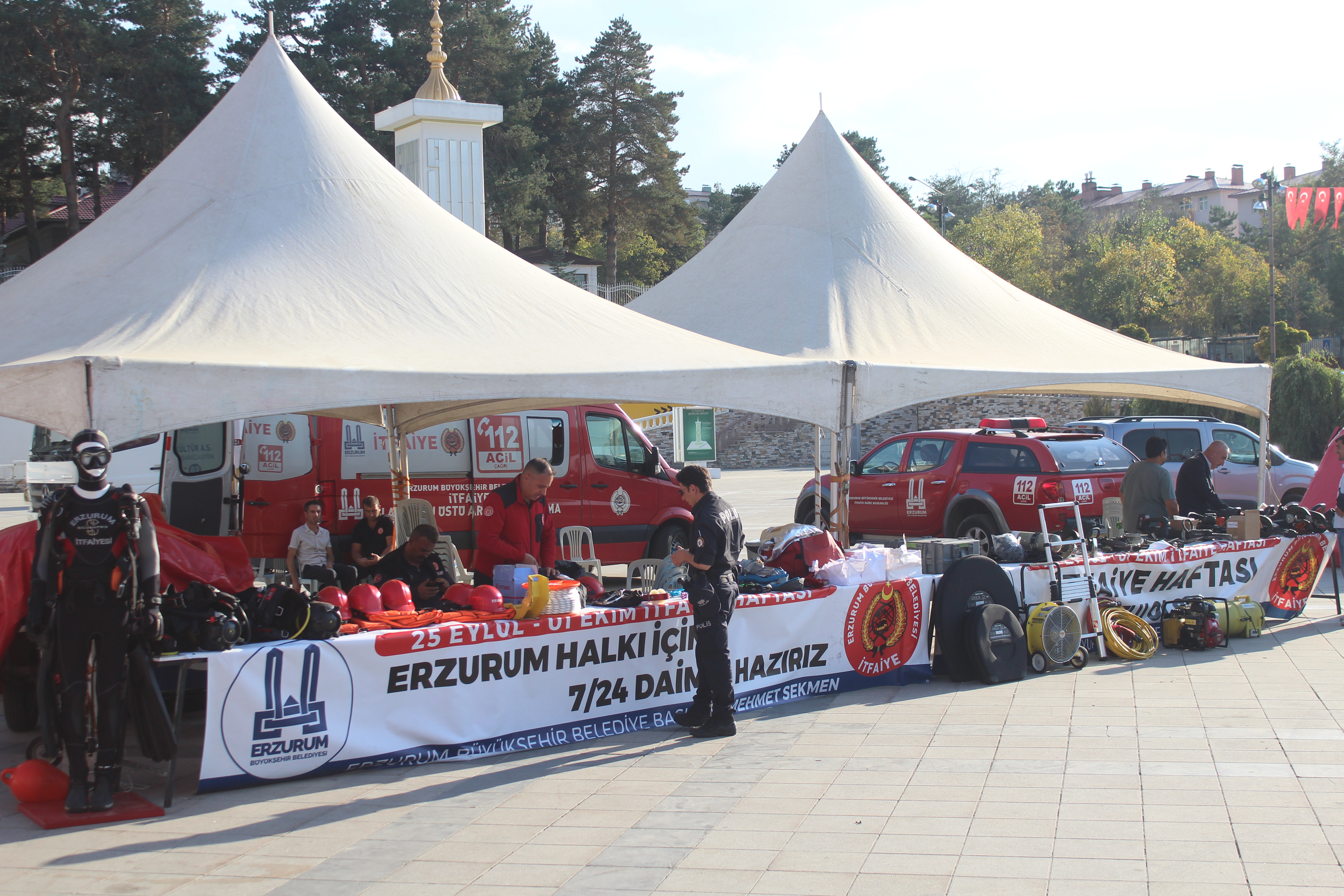 Erzurum İtfaiye Müdürlüğü’nün düzenlediği İtfaiye haftasında İtfaiyecilik faaliyetleri tanıtıldı. Deprem bölgesinde üstün başarılara imza atan Erzurum İtfaiye Ekiplerinin ellerinde bulunan imkanları göstermekten güdülen amaçlardan birisi vatandaşların kendileri güvenli hissetmelerine verilen önemden kaynaklandığını söyleyen Erzurum İtfaiye Şube Müdürü Muhammet Bozdemir, arama kurtarma ve itfaiyecilik faaliyetlerinde her zaman bütün imkanlarını seferber etmek için mesai harcayacaklarını vurguladı.