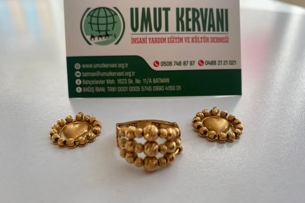 Kadının altın bağışını teslim alan Umut Kervanı yetkilileri, ismini vermek istemeyen hayırsever kadına gösterdiği bu anlamlı yardımdan dolayı teşekkür etti.