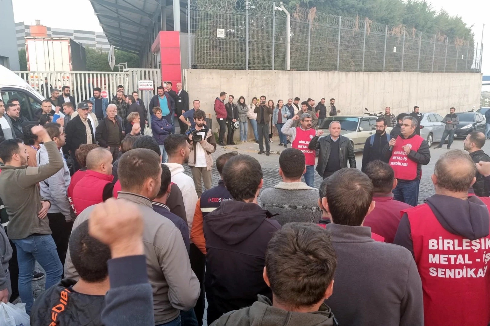 Fabrika önünde işçilere seslenen Birleşik Metal iş Sendikası Bursa Şube Başkanı Gökhan Aydın, Ekos işvereninin yetki başvurusu sonrasında 100’e yakın işçi alarak yetkiyi engellemeye çalıştığını ancak başaramadığına dikkati çekti.