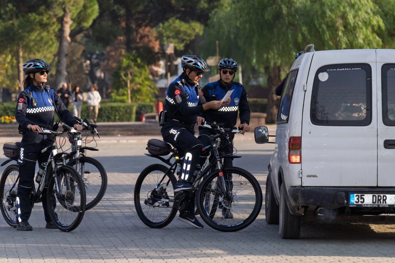 İzmir Büyükşehir Belediyesi’nin bisikletli zabıta ekipleri; çevre kirliliğinden, yayalaştırılan bölgelerin güvenliğine kadar birçok alanda düzenin sağlanması için çalışıyor. Kullandıkları çevre dostu bisikletlerle, kıyı bandı ile Kıbrıs Şehitleri Caddesi ve Tarihi Kemeraltı Çarşısı gibi yayalaştırılmış bölgelerde görev yapan ekipler, kurallara uymayanlara göz açtırmıyor. Daha temiz ve düzenli bir kent için saatlerce pedal çeviren zabıta, kural ihlallerine karşı bu yıl içerisinde 6 bin cezai işlem uyguladı.