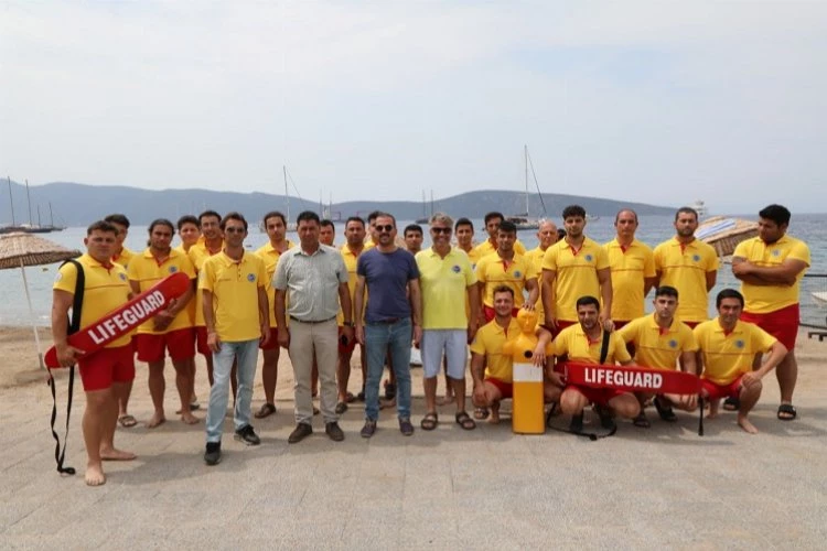 Muğla'nın Bodrum Belediyesi halk plajlarında deniz güvenliğini sağlamak üzere tam donanımlı cankurtaranların eğitimine devam ediyor