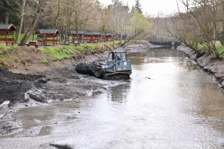 BALIKESİR (İGFA) - Tabiat Parkı Değirmen Boğazı’nda doğal yapıyı bozmadan çevre düzenleme çalışmalarını tamamlayan Balıkesir Büyükşehir Belediyesi şimdi de Devlet Su İşleri işbirliği ile her yıl olduğu gibi Değirmen Boğazı’nın içinden geçen derede ıslah çalışmalarını yürütüyor. Kış mevsiminde yağışlar nedeni ile derenin dibinde oluşan balçık iş makineleri ile bu yılda temizleniyor. Bu temizlik sayesinde sudaki oksijen oranı artarken balçık nedeni ile oluşan kötü kokuda ortadan kalkıyor.