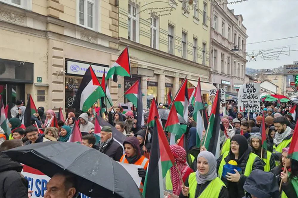 Bosna Hersek'in başkenti Saraybosna'da, Filistin sevdalıları, siyonist işgal rejimine tepki gösterdi.