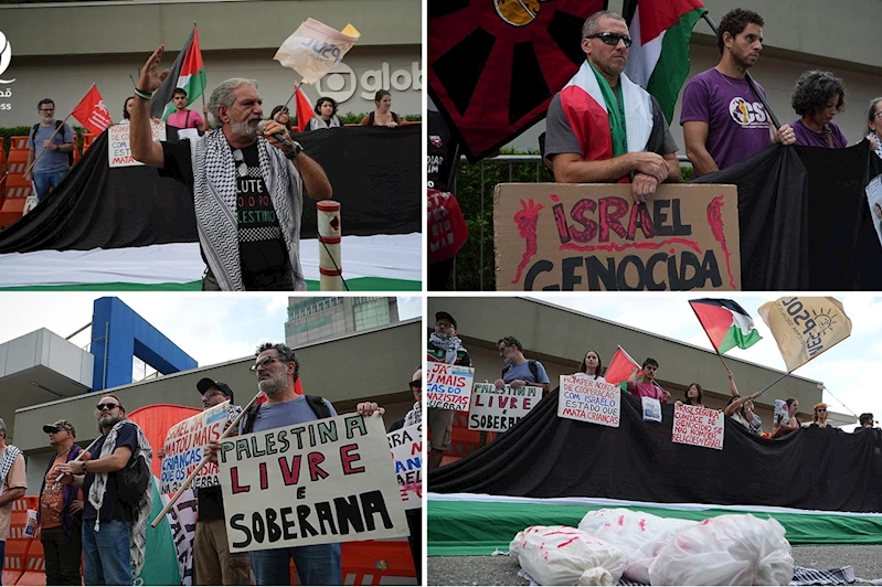 Protestocular, São Paulo yakınlarındaki Osasco kentinde bulunan "SBT" kanalının merkezine de yürüyerek, siyonist işgalinin suçlarını görmezden gelen ve Ekim ayından bu yana 200'den fazla Filistinli gazetecinin öldürülmesini dikkate almayan "yanıltıcı medya rolünü" kınadılar.