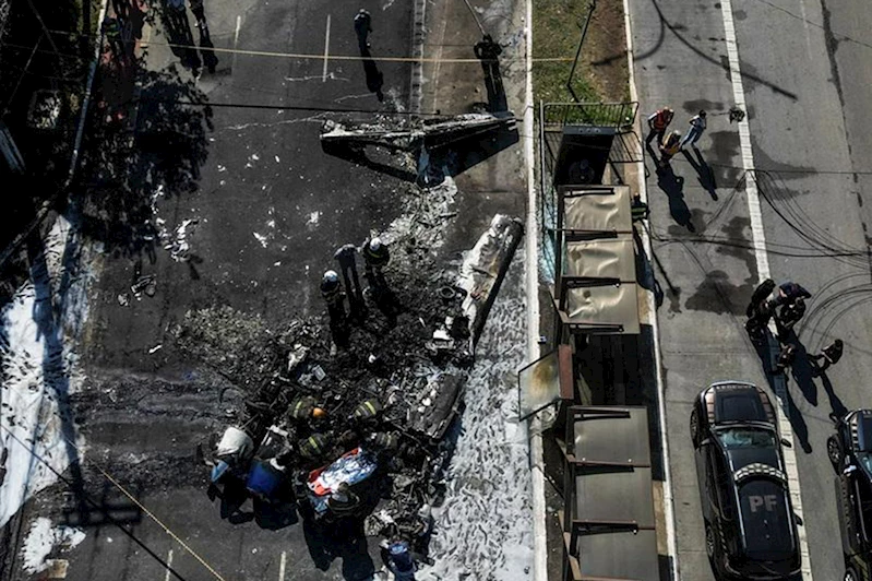 Campo de Marte Havaalanı'ndan havalanan küçük uçak, kalkıştan kısa süre sonra kent merkezine yakın bir caddeye düştü.