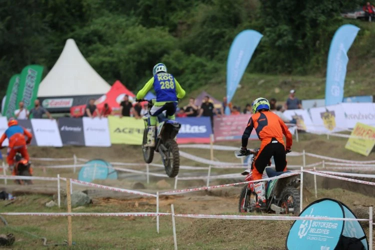 750 metre uzunluğundaki Kartepe Enduro ve Motocross Parkurunda yarışan sporcular birbirinden zorlu engelleri geçmeye çalıştı