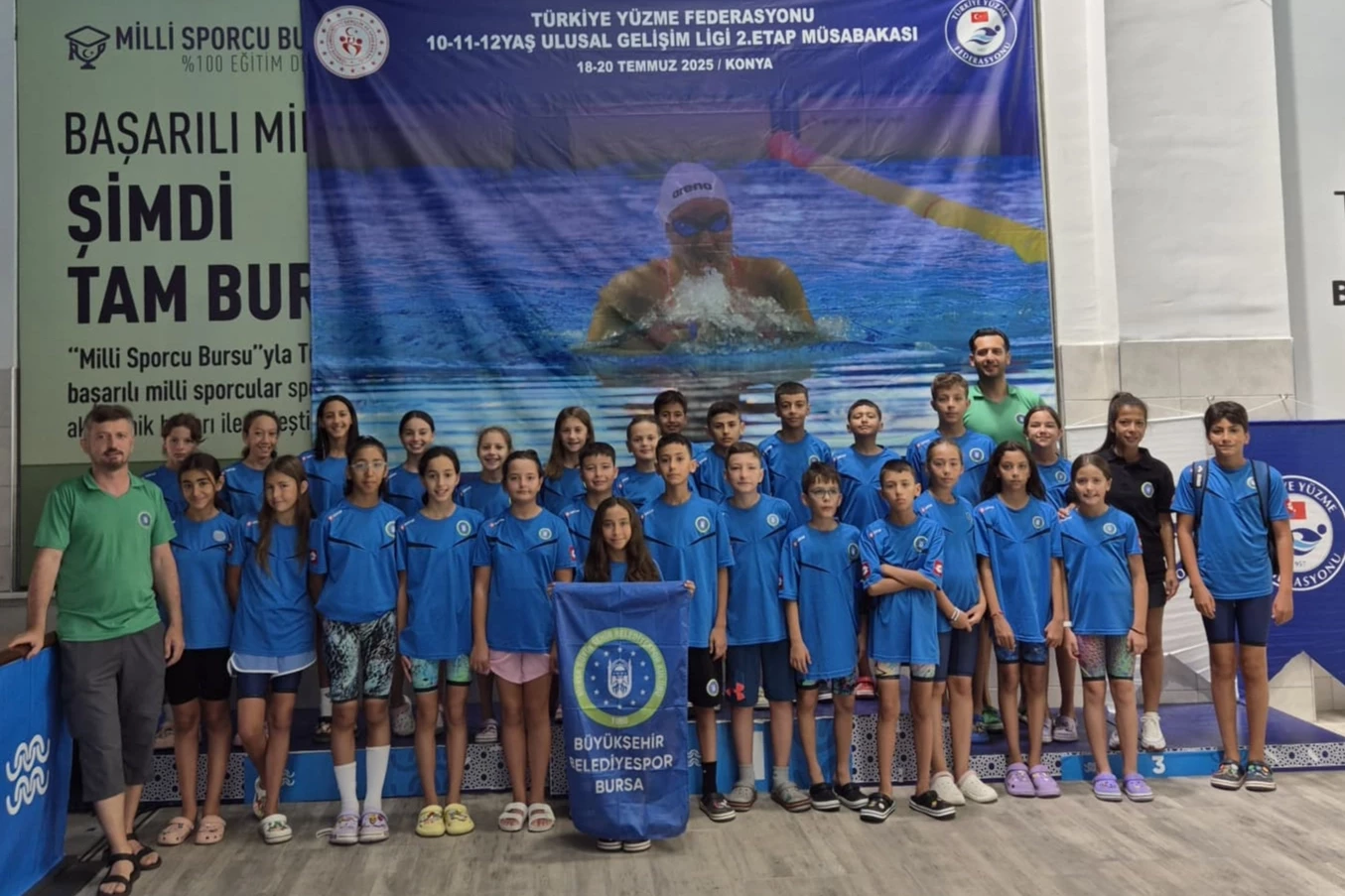 Konya'da düzenlenen Türkiye Yüzme Federasyonu 10-11-12 Yaş Ulusal Gelişim Ligi 2. Etap Yarışları'nda Bursa Büyükşehir Belediyespor Kulübü yüzücüleri 5 bronz, 2 gümüş olmak üzere 7 madalya kazandı.