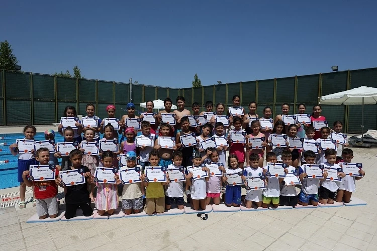 Bursa Büyükşehir Belediyesi’nin modern tesislerinde deneyimli antrenörler eşliğinde spor yapma imkanı bulan çocuklar, hem tatilin hem de havuzun tadını çıkardı. Eğlence dolu geçen ilk dönem sonunda minik yüzücüler, sertifika almanın mutluluğunu yaşadı.