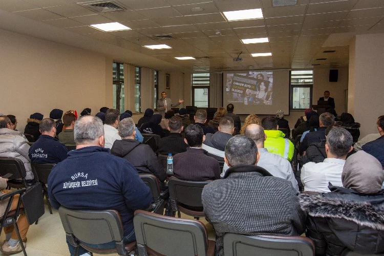 BURSA (İGFA) - Bursa Büyükşehir Belediyesi İnsan Kaynakları ve Eğitim Dairesi Başkanlığına bağlı Eğitim Şube Müdürlüğü koordinasyonunda verilen eğitim, kurum içi eğitmen kadrosundan İş Sağlığı ve Güvenliği Şube Müdürü Çağdaş Büyük tarafından verildi.