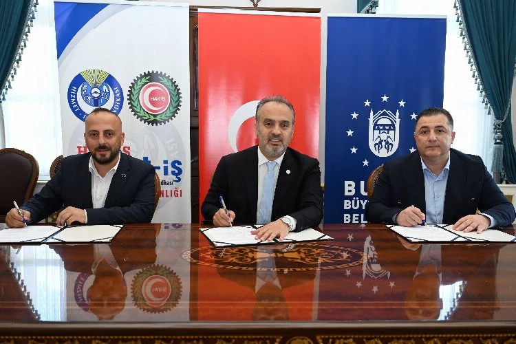 Bursa Büyükşehir Belediyesi ve BUSKİ’de çalışan toplam 444 kadrolu işçiyi ilgilendiren toplu iş sözleşmesi, Büyükşehir Belediyesi ile Hizmet-İş Sendikası arasında imzalandı.