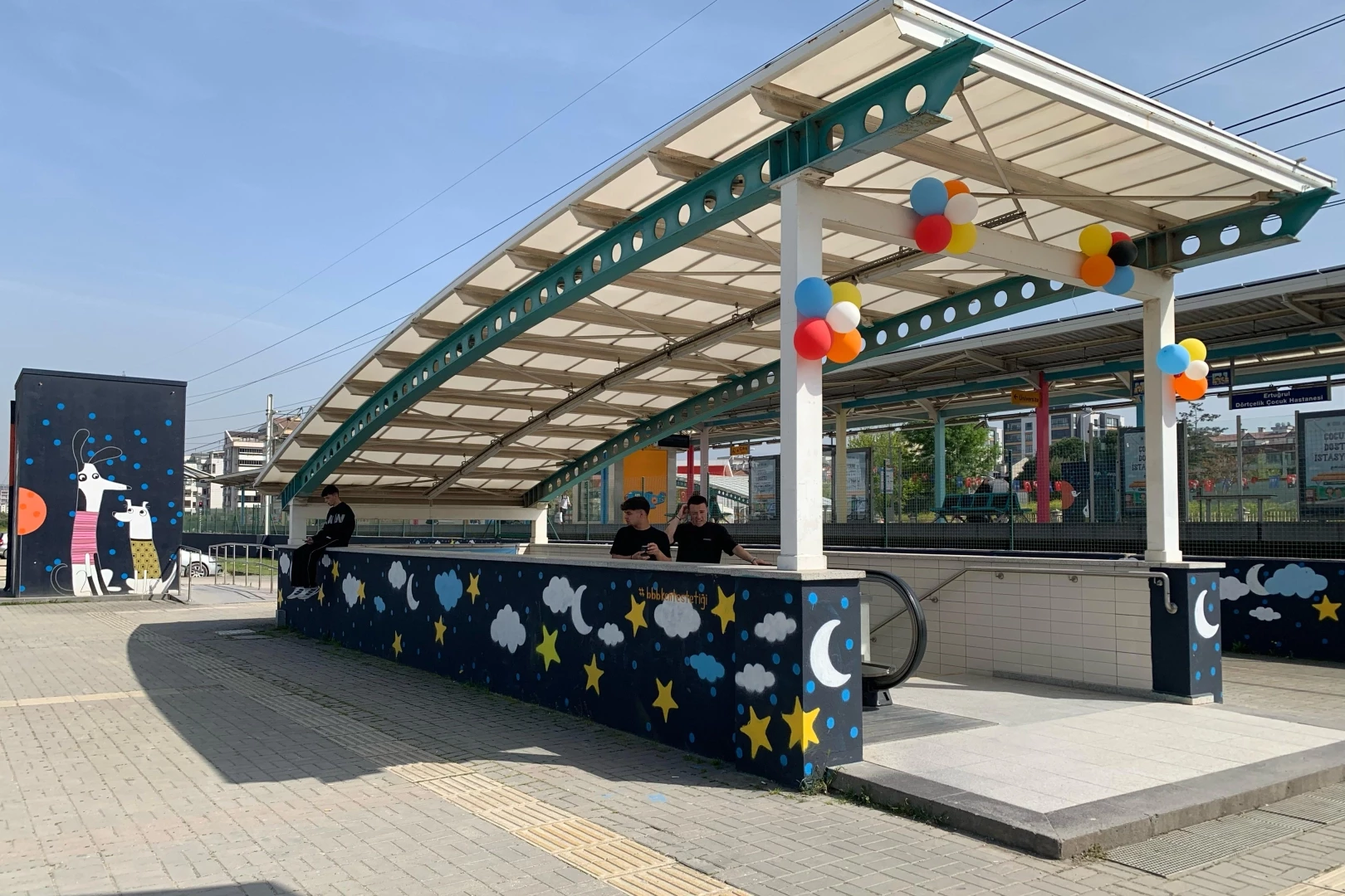 Kalıcı duvar oyuncakları, oyun alanları ile çocukların konforu düşünülerek hazırlanan istasyonda, basamaklar da öğretici bilgilerde donatıldı.