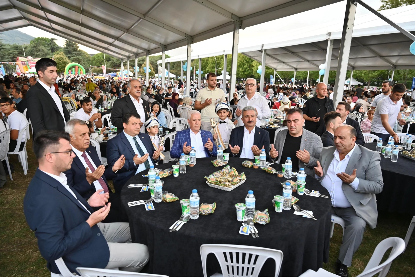 Sosyal Hizmetler Daire Başkanlığı’nın düzenlediği toplu sünnet şöleninde bulunmaktan büyük mutluluk duyduğunu dile getiren Büyükşehir Belediye Başkanı Mustafa Bozbey, sünnetin, nesiller boyu dayanışmayı simgeleyen, toplumun en köklü değerlerinden biri olduğunu hatırlattı. Çocukların, sünnetinin tıbbi güvenlik ve hijyen standartlarına uygun şekilde yapılmasının, onların sağlığı ve geleceği açısından son derece önemli olduğunu söyleyen Başkan Bozbey, “Toplu sünnet şöleninde bir kez daha görüyoruz ki, sosyal hizmetler yalnızca ihtiyaçlara cevap vermekle kalmaz. Aynı zamanda toplumun tamamını kucaklayarak daha eşit ve adil bir gelecek inşa eder. Bursa Büyükşehir Belediyesi olarak ‘sosyal adalet’ ve ‘fırsat eşitliği’ bizim yol haritamız. Her bir çocuğumuzun, maddi imkânlardan bağımsız olarak eşit fırsatlara sahip olmasını sağlamak bizim en temel görevimizdir. Her geçen gün daha da genişleyen sosyal projelerle kentimize değer katıyoruz. Bursa’mızda yeni bir belediyecilik anlayışı ortaya koyup tüm ülkeye örnek olacağız” dedi.
