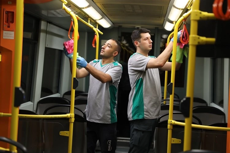 Büyükşehir Belediyesi, günde 800 bin fazla vatandaşın kullandığı toplu taşıma araçlarında hijyen çalışmalarını büyük bir titizlikle yürüterek halk sağlığına büyük önem veriyor.