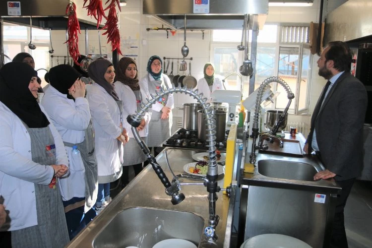 İl Milli Eğitim Müdürü Serkan Gür, Yıldırım Halk Eğitim Merkezine yaptığı ziyarette kursiyerlerle de bir araya geldi. Gür, atölyelerde yapılan çalışmaları yerinde inceledi.