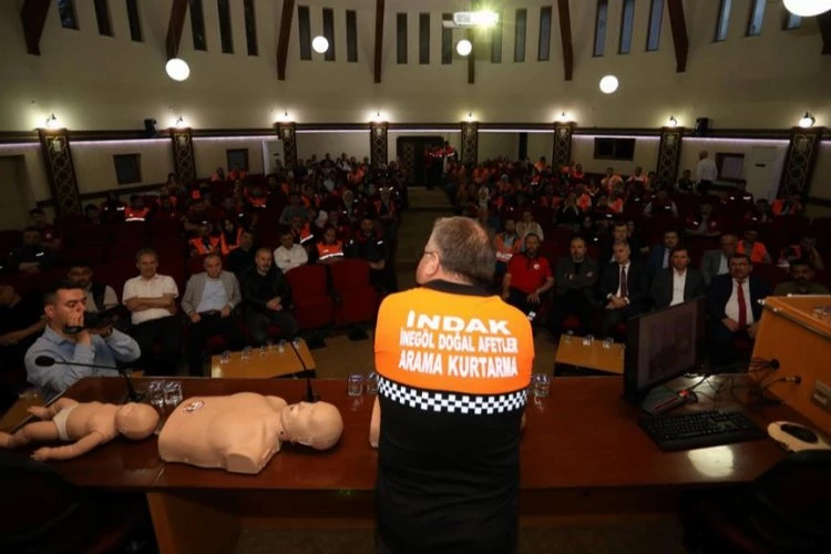 Bursa'da İnegöl Belediyesi ile İNDAK iş birliğinde şehirdeki tüm kurum müdürleri, siyasi parti temsilcileri ve meclis üyeleri ile İNDAK gönüllülerinin katıldığı “Temel İlk Yardım Eğimi” düzenlendi.