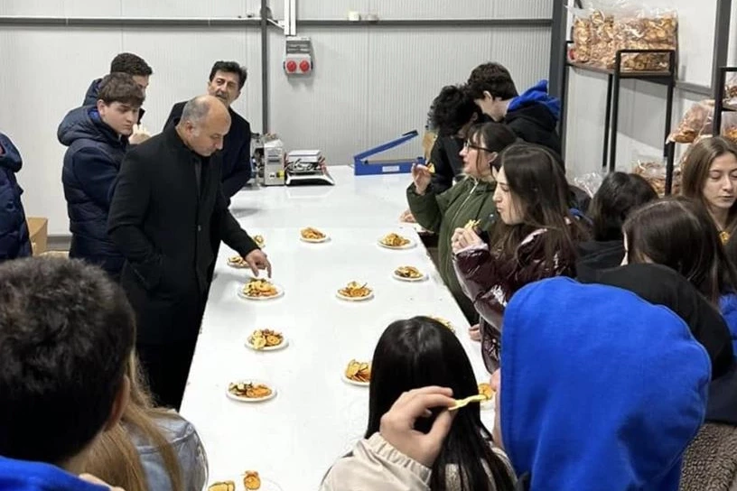 Özündenkuru meyve kurutma tesisini gezen öğrenciler meyve kurularının tadına da baktı. Özündenkuru’yu deneyimleyen öğrenciler hem tesise hem lezzete tam not verdi.