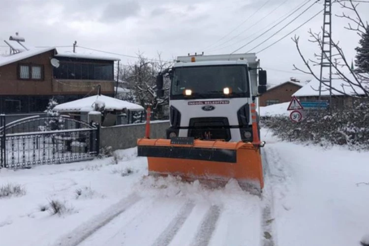 BURSA (İGFA) - Karla mücadelede deneyimli olan İnegöl Belediyesi, Meteoroloji Genel Müdürlüğü tarafından yapılan kar yağışı uyarısı ile birlikte teyakkuz halindeki ekipleriyle sahaya inerek karla kaplanan kırsal mahallerin yollarında küreme ve tuzlama çalışması gerçekleştirdi.
