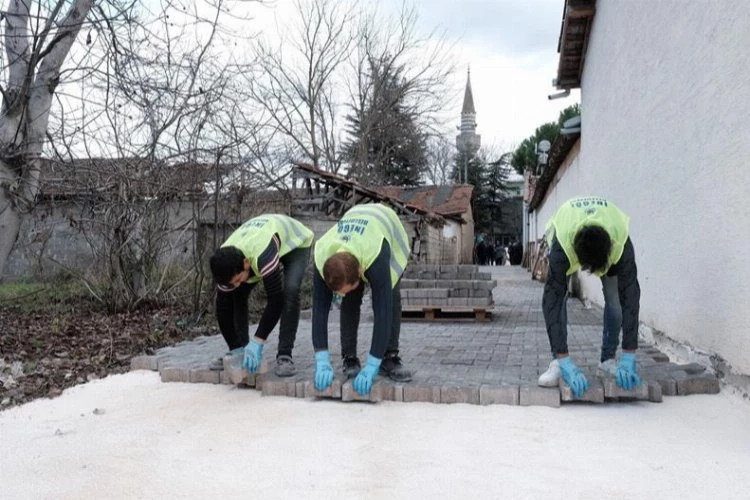 Hava şartları elverdiği sürece yapım çalışmalarına ara vermeksizin devam eden İnegöl Belediyesi, son olarak Bilalköy Mahallesinde parke taş uygulamasına başladı.
