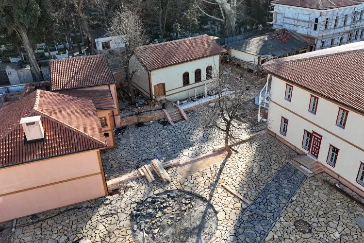 Bursa Büyükşehir Belediyesi tarafından rekonstrüksiyon çalışmaları tamamlanma aşamasına gelen 4 asırlık Bursa Mevlevihanesi, tavan işlemeleri, ahşap oymaları ve çevre düzenlemeleriyle ilk günkü ihtişamına kavuşuyor.