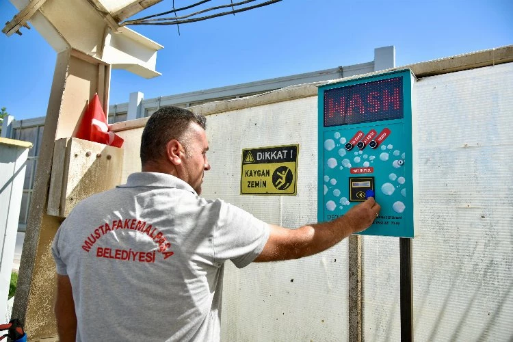 Yenilenen araç temizlik istasyonunda, 50 TL’ye satın alınan mavi aparat kullanılarak yapılan araç yıkamaları sadece 15 TL'ye gerçekleştiriliyor.