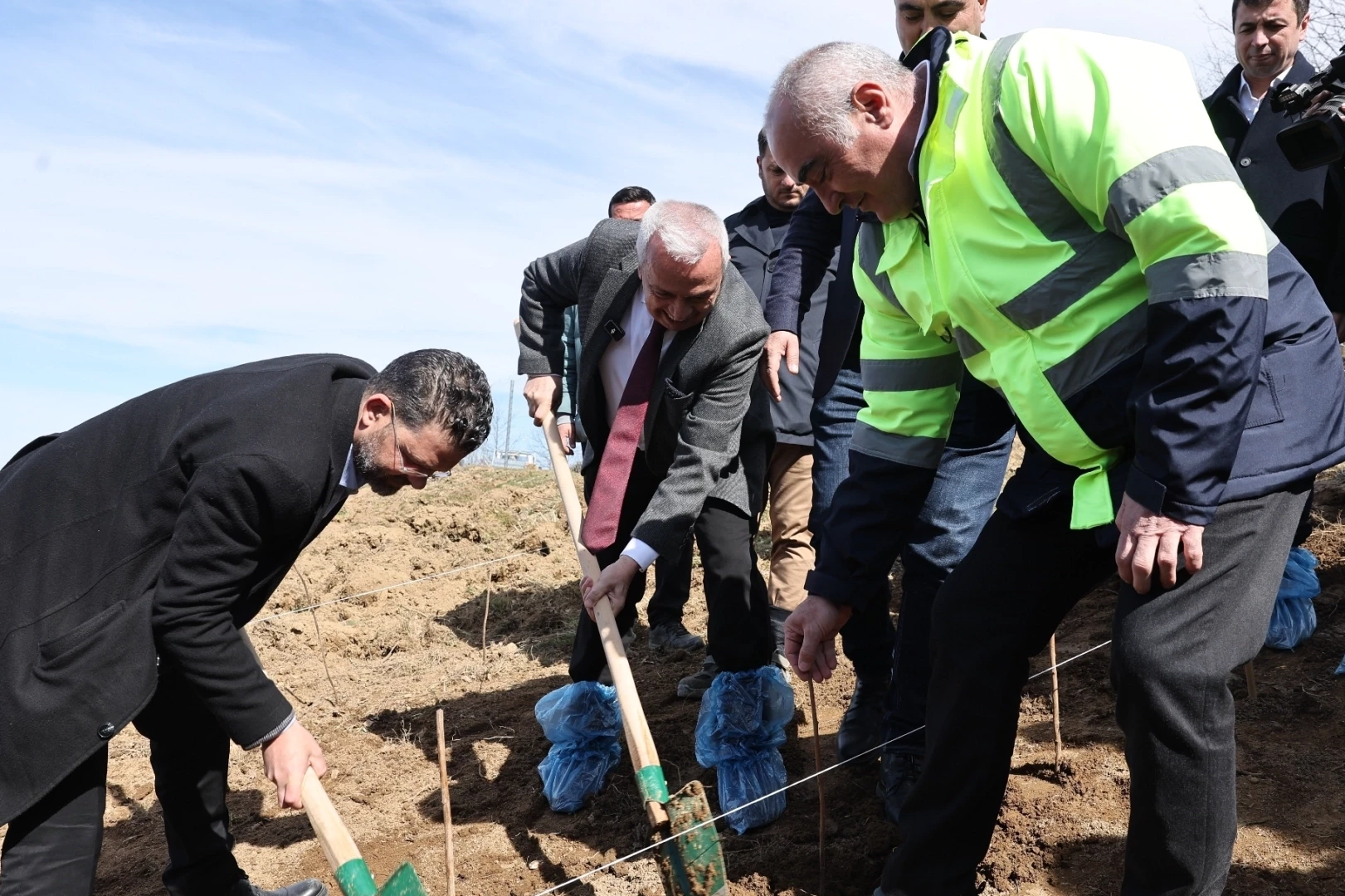 Konuşmaların ardından Nilüfer Belediye Başkanı Şadi Özdemir ve diğer katılımcılar, ekim yapılacak alanda ahududu fidanlarını toprakla buluşturdu.