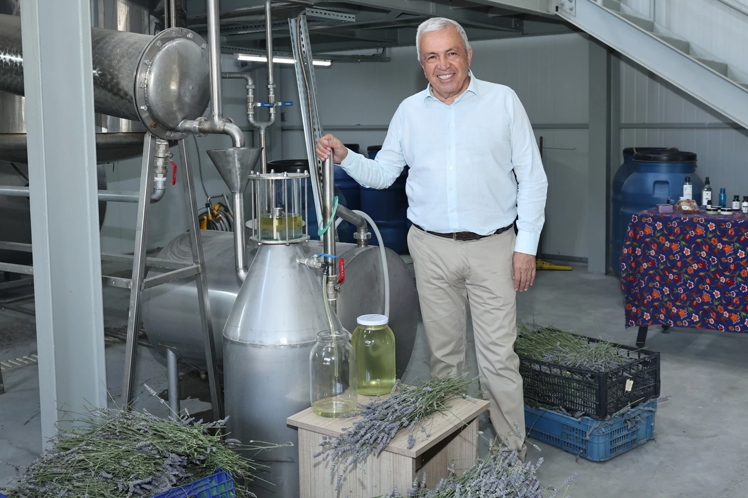 Hasadın ardından Nilüfer Tıbbi ve Aromatik Bitki İşleme Tesisi’ni de ziyaret eden Başkan Şadi Özdemir, lavantanın distilasyon süreci ve elde edilen ham maddelerden üretilen ürünler hakkında yetkililerden bilgi aldı.