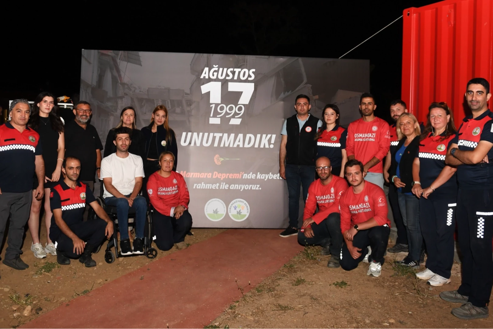 BURSA (İGFA) - Bursa'da Soğanlı Millet Bahçesi’nde Osmangazi Belediyesi Afet İşleri Müdürlüğü ve Osmangazi Kent Konseyi tarafından düzenlenen 17 Ağustos 1999 Marmara Depremini 26’ın yıl dönümü anma programına Osmangazi Kent Konseyi Başkanı Fatma Çil Yılmaz, Osmangazi Belediyesi Birim Müdürleri, Bursa’da görev yapan arama kurtarma birimleri, muhtarlar ve vatandaşlar katıldı. 17 Ağustos 1999 Marmara Depreminin 26’ıncı yıl dönümünün ilk saatlerinde başlayan anma programında depremde hayatını kaybedenler ve tüm şehitler için saygı duruşunda bulunuldu. Anma programının katılanlar Osmangazi Belediyesi tarafından Soğanlı Millet Bahçesi’ne yerleştirilen içinde 63 farklı kalemde afet müdahale ve insani yardım malzemesi bulunan Afet ve Acil Durum Müdahale İstasyonunu gezme imkanı buldu. Ayrıca düzenlenen programda Osmangazi Kent Konseyi tarafından hazırlanan “Engelli Bireyler Afet Destek Haritası Projesi” tanıtıldı. Bu proje sayesinde engelli bireylerin adresleri (isimler gizli tutulmak kaydıyla) harita üzerinde farklı renk ve sembollerle işaretlendi. Olası bir depremde arama kurtarma ekipleri, seslenmeleri duyamayan engelli bireylere hızla ulaşabilecek, hareket edemeyen bir vatandaş öncelikli olarak tahliye edebilecek, görme engelli bireyler güvenli alanlara yönlendirilecek ve yatalak vatandaşların durumundan anında haberdar olunacak.