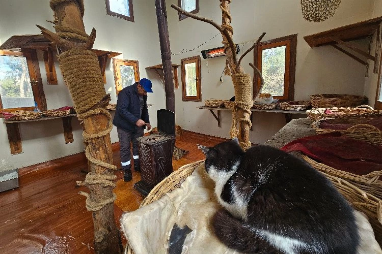 Bursa’da havaların soğumasıyla birlikte sobalar, Osmangazi Belediyesi Sahipsiz Hayvanlar Doğal Yaşam ve Tedavi Merkezi’ndeki kediler için yandı.