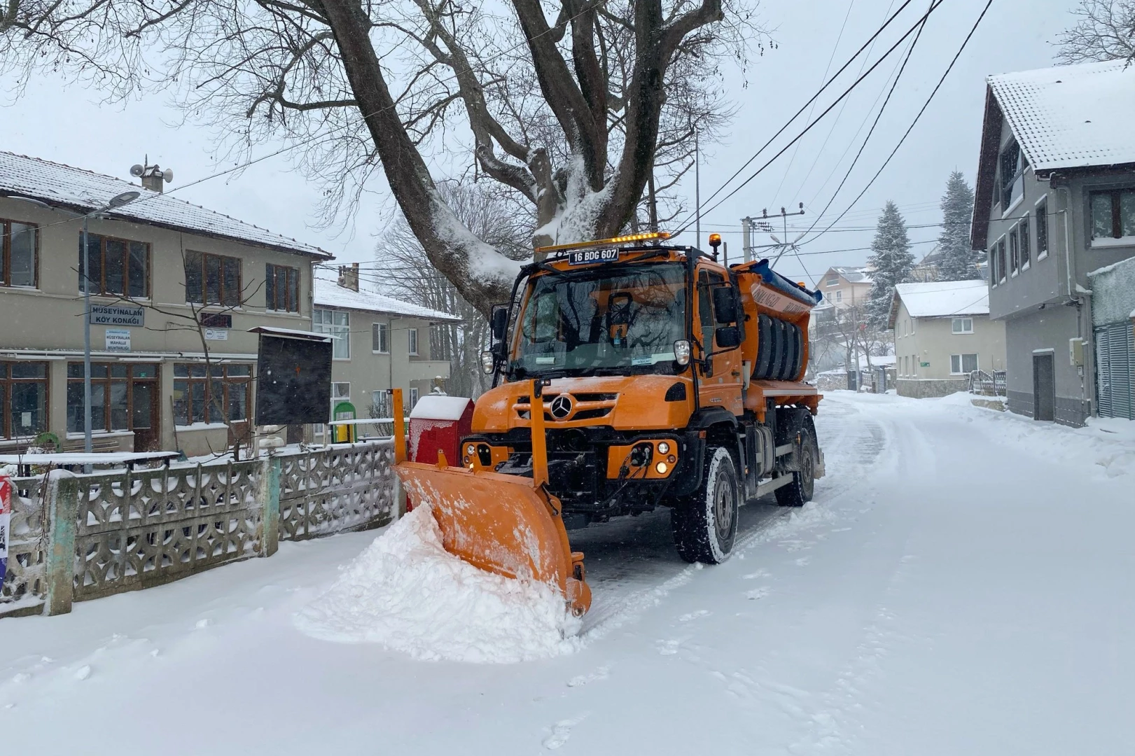 Bursa'da Osmangazi Belediyesi, dağ bölgesinde yer alan mahallelerin kardan kapanan yollarını ulaşıma açtı. Yollardaki karı küreyerek kaldıran belediye ekipleri, buzlanmaya karşı da tüm ana ve ara yollara solüsyon döktü.