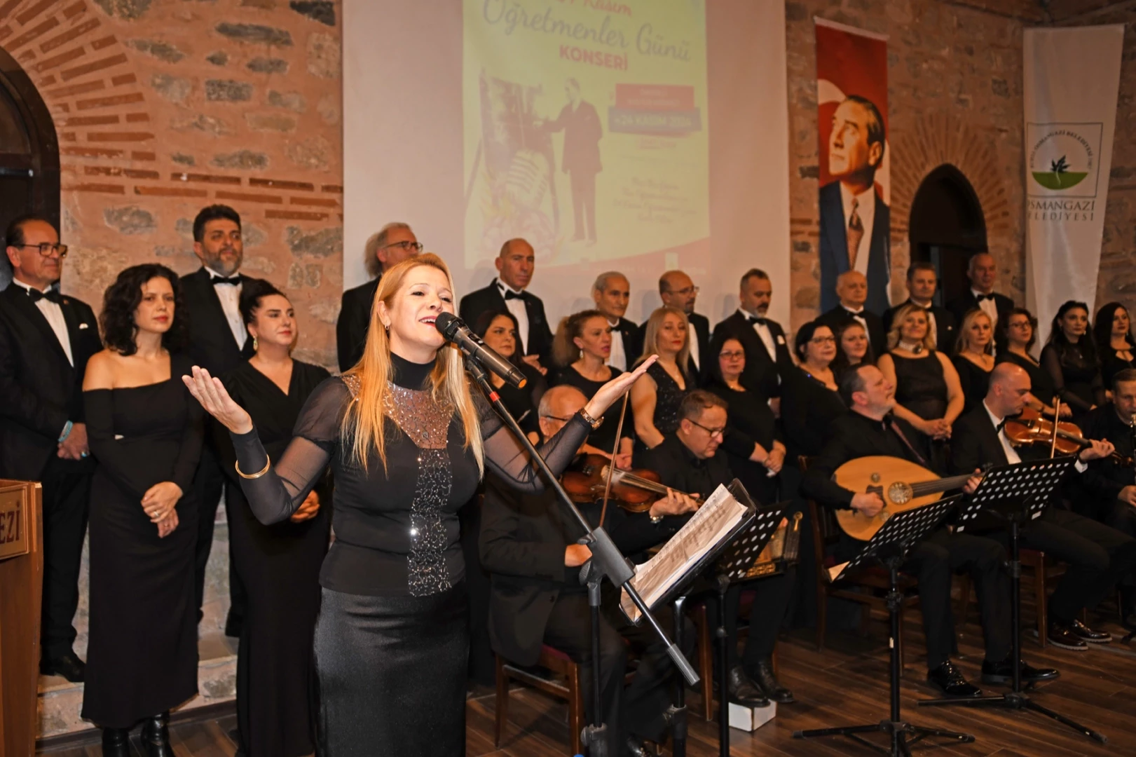 Şef Rüştü Şentürk yönetimindeki koro üyeleri, seslendirdiği birbirinden güzel şarkılar ile öğretmenlere müzik ziyafeti sundu. Konserde, Başöğretmen Mustafa Kemal Atatürk anısına ve bütün öğretmenler için birbirinden güzel eserler seslendirildi. Osmangazi Belediyesi Türk Sanat Müziği Korosu, performansıyla alkış aldı. Yaklaşık 2 saat konser süresince eğlenceli saatler yaşayan öğretmenler, yılın stres ve yorgunluğunu bir nebze de olsa üzerlerinden attı.