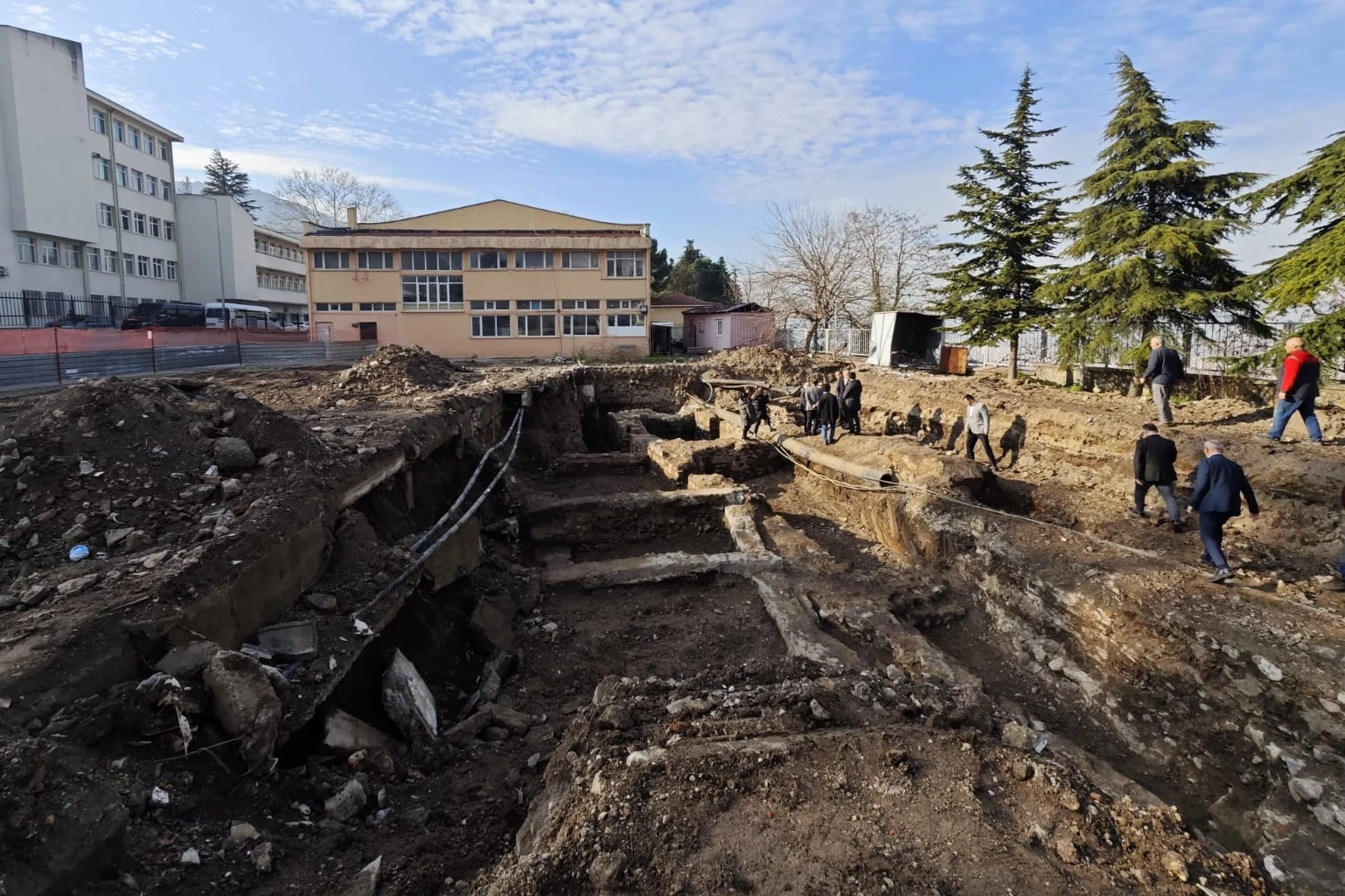Bursa'nın köklü eğitim kurumlarından biri olan Tophane Mesleki ve Teknik Anadolu Lisesi'nde, tarihi yapıların temellerine ulaşmak amacıyla yıkım çalışmalarının ardından kazı çalışmaları başladı