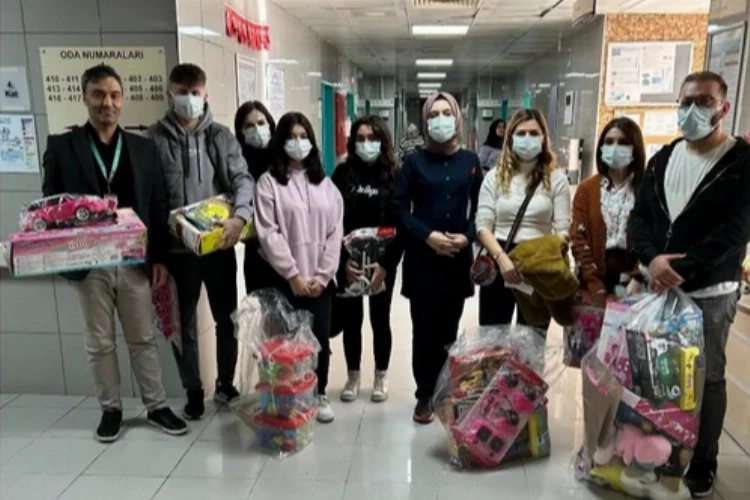Bursa'da Yıldırım Mesleki ve Teknik Anadolu Lisesi Halkla İlişkiler Alanı "Yeni Yıl Sana Ne Getirsin" kampanyası kapsamında kanser hastası çocuklara sevgi dolu hediyeler verdi.