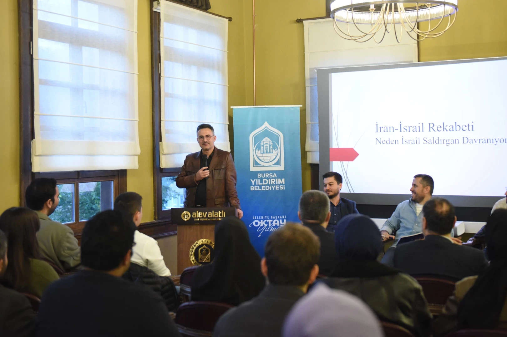 BURSA (İGFA) - Kentin kültür ve sanatta parlayan yeni yüzü olan Alev Alatlı Şehir Düşünce ve Sanat Merkezi’nde gerçekleştirilen program serisinin ilki Doç. Dr. İsmail Akdoğan, Dr. Öğretim Üyesi Furkan Polat, Dr. Öğretim Üyesi Mustafa Küpeli’nin anlatımıyla gerçekleştirilen ‘Ortadoğu’da Bölgesel Savaş Riski: İran-İsrail Gerilimi’ konu başlıklı söyleşi ile başladı.